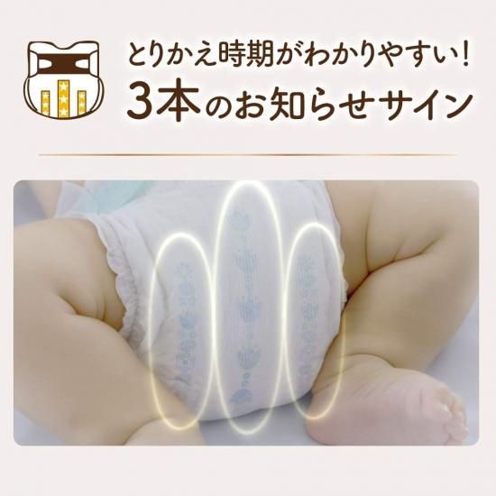 ●「ナチュラルムーニー 新生児」は、オーガニックコットン配合表面シートのうまれたてのお肌にあんしんのおむつです。