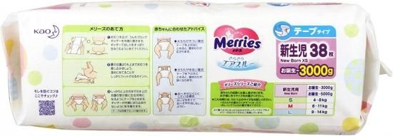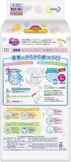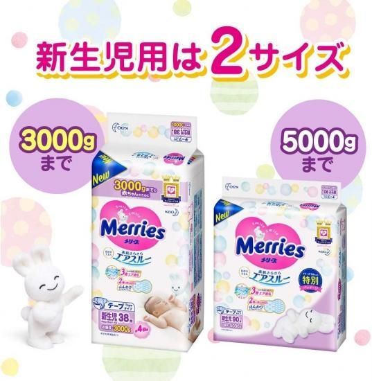 【テープ 新生児用】メリーズさらさらエアスルー (お誕生~3kg) 38枚