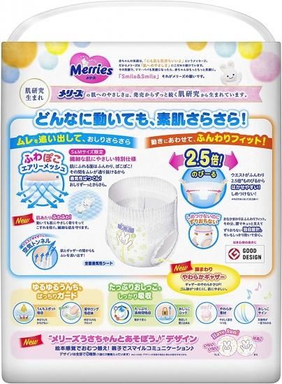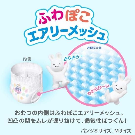 ・パンツS・Mサイズだけの特別仕様、メリーズ独自の「ふわぽこエアリーメッシュ」。肌にふれる面はふんわりぽこぽこ。