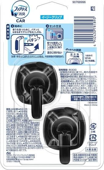 ファブリーズ 消臭芳香剤 W消臭 車用 クリップ型 イージークリップ 微香 ふんわりしゃぼんのそよ風 2mL×2個