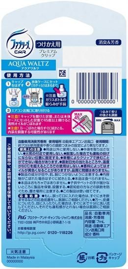 ファブリーズ 消臭芳香剤 W消臭 車用 クリップ型 プレミアムクリップ アクアワルツ つけかえ用 7mL×3個