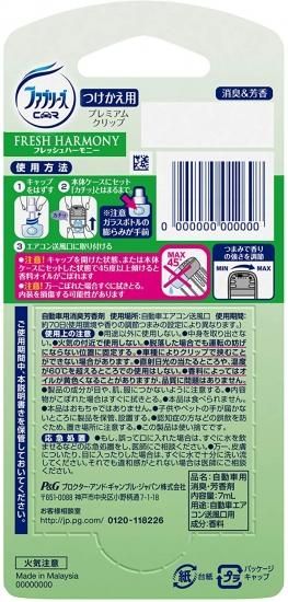 ファブリーズ 消臭芳香剤 W消臭 車用 クリップ型 プレミアムクリップ フレッシュハーモニー つけかえ用 7mL