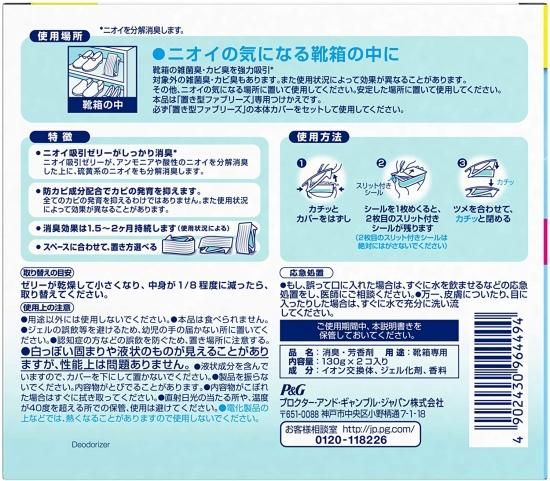 ファブリーズ 消臭芳香剤 W消臭 靴箱用 置き型 ピュアクリーンの香り つけかえ用 130g×2個