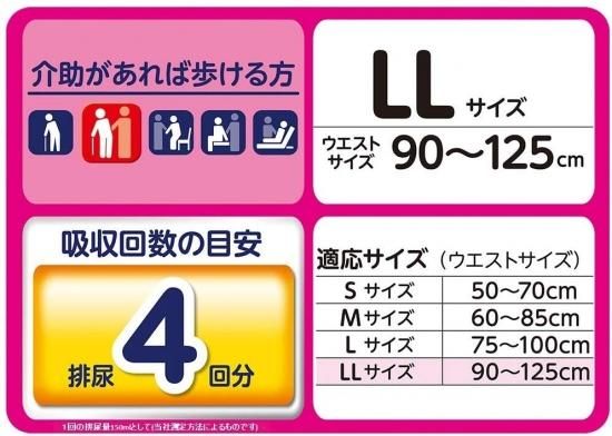 ●介助で歩ける方のための、薄くて軽い下着のようなはき心地の介護用おむつパンツタイプ薄型LLサイズです。