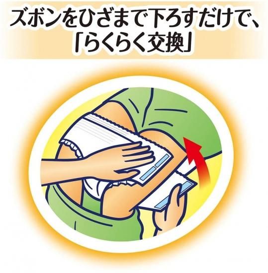 ●座れる方のための、ズボンを全部脱がずにパンツ交換ができる、交換簡単なパンツ型紙オムツMサイズです。