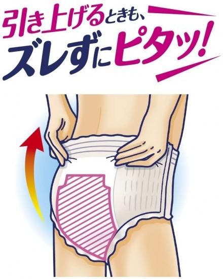 ●ズレ止めテープがぴったりくっついて上げ下げしてもズレずに、モレ・違和感を防ぎます。
