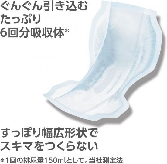 ●おしりもしっかりガードする安心の大きさと瞬間吸収力で、長時間ご使用いただける尿とりパッドです。