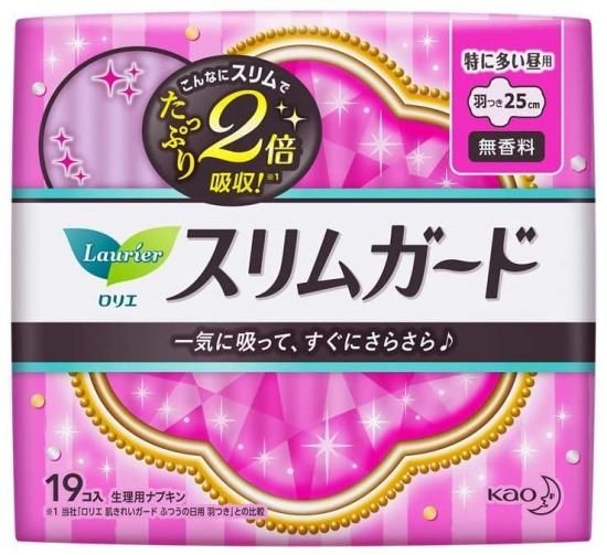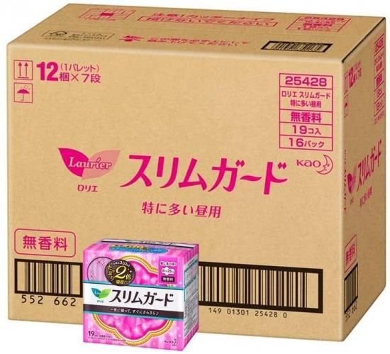 ロリエ スリムガード 長時間しっかり昼用 羽つき 無香料 25cm 304枚 (19枚入×16個)