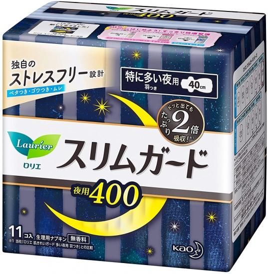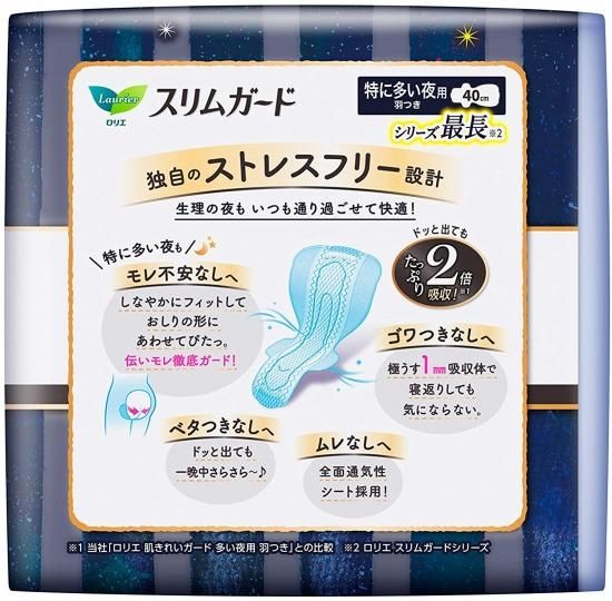 ロリエ スリムガード 特に多い夜用 羽つき 無香料 40cm 66枚 (11枚入×6個)
