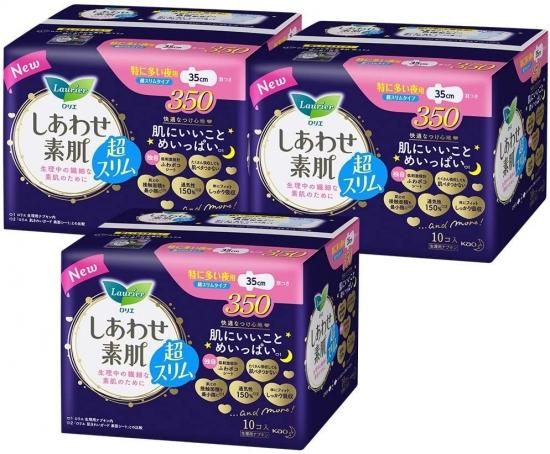 ロリエ しあわせ素肌 超スリム 特に多い夜用 羽つき 35cm 30枚 (10枚入×3個)