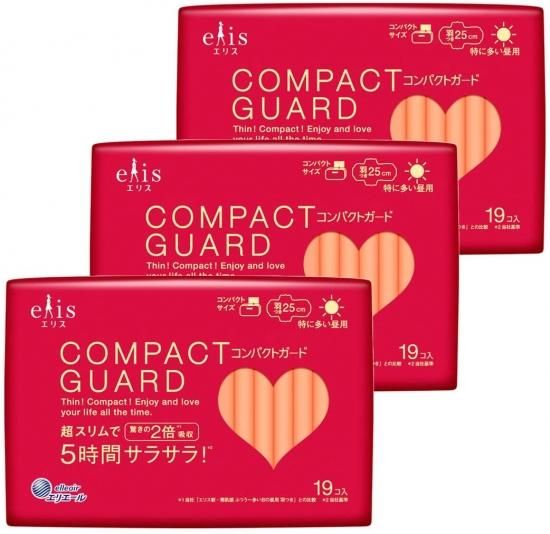 エリス コンパクトガード 特に多い昼用 羽つき 25cm 57枚 (19枚×3個)