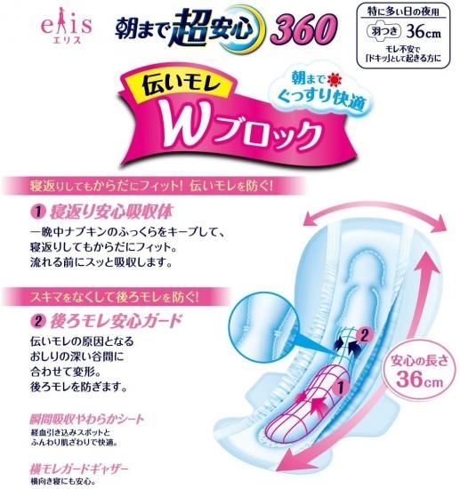 エリス 朝まで超安心 特に多い日の夜用 羽つき 36cm 14枚