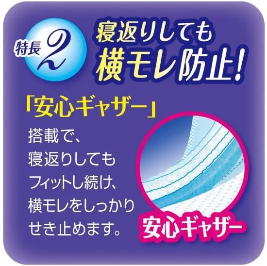 ●安心ギャザー搭載で、寝返りしてもフィットし続け、横モレをしっかりせき止めます。