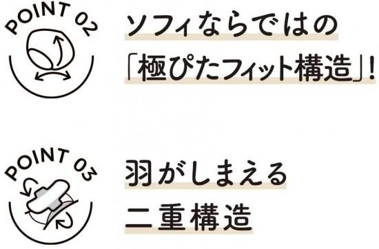 ●ソフィショーツ共通の特徴、ナプキンをぴったりフィットさせる極ぴた構造はそのままに、すっぽり落ち着くハイウエストサイズに。