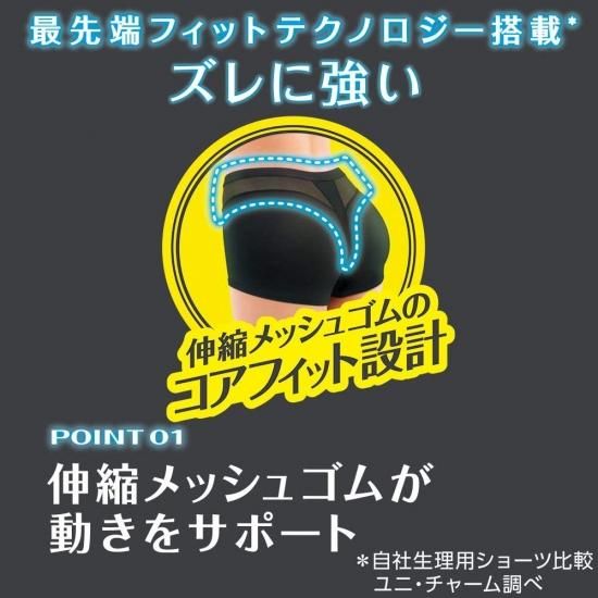 ●ソフィSPORTSシリーズ生理用品のショーツです。●伸縮メッシュゴムコアフィット設計で日常のシーンはもちろんスポーツ時もナプキンのフィット性を維持します。