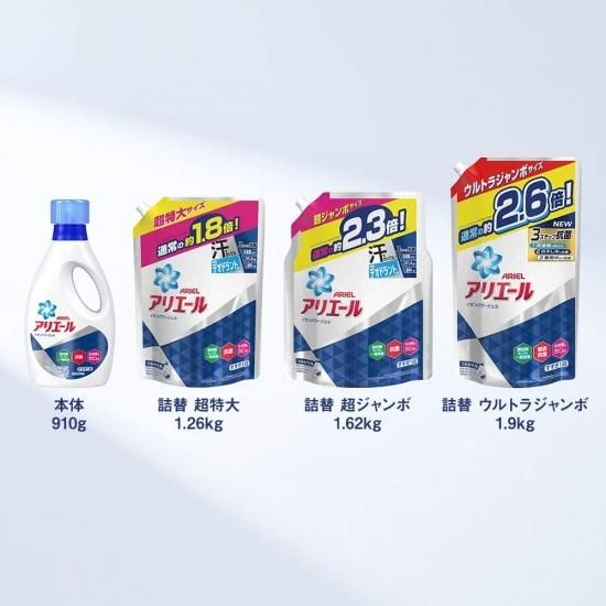アリエール 洗濯洗剤 液体 イオンパワージェル 抗菌 詰め替え 超ジャンボ 1.62kg×5個