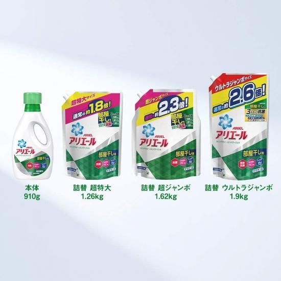 アリエール 洗濯洗剤 液体 イオンパワージェル 部屋干し用 抗菌 本体 910g