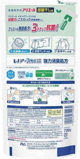 アリエール 洗濯洗剤 液体 イオンパワージェル 部屋干し用 抗菌 詰め替え 720g×12個