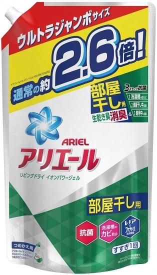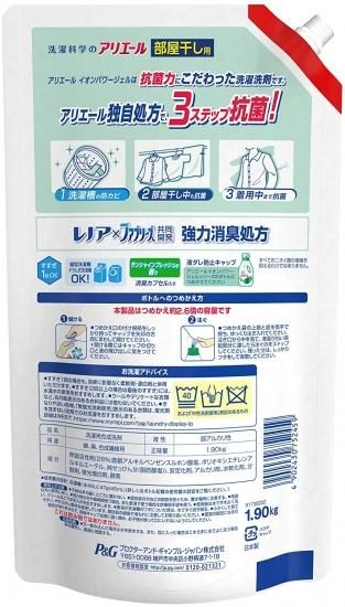 アリエール 洗濯洗剤 液体 イオンパワージェル 部屋干し用 抗菌 詰め替え ウルトラジャンボ 1.9kg