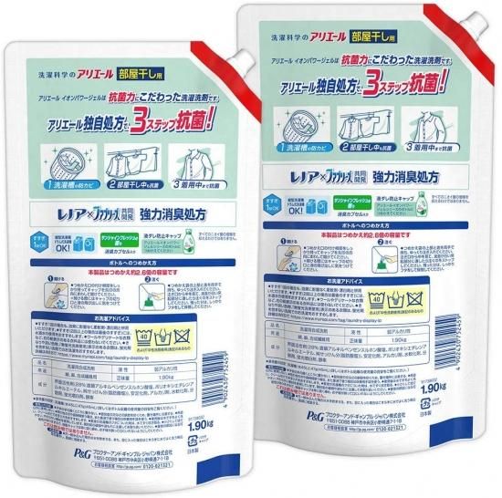 アリエール 洗濯洗剤 液体 イオンパワージェル 部屋干し用 抗菌 詰め替え ウルトラジャンボ 1.9kg×2個