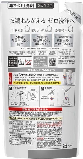アタック ZERO 洗濯洗剤 液体 詰め替え 360g×24個
