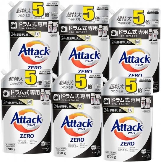 アタック ZERO 洗濯洗剤 液体 ドラム式専用 詰め替え 1700g×6個
