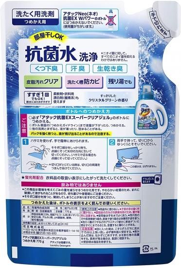 アタック 抗菌EX スーパークリアジェル 洗濯洗剤 液体 詰め替え 770g×15個