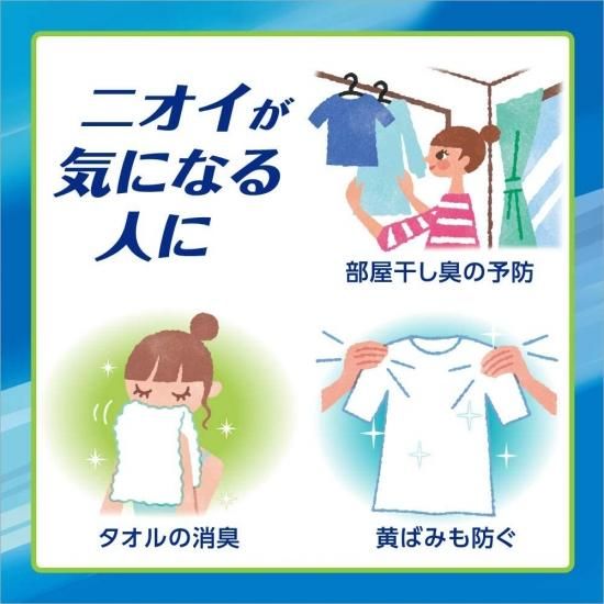 ●ワイドハイターEXパワーと共同開発の除菌・消臭成分配合で、体操服や靴下の手ごわい汚れから黄ばみまでパワフル洗浄。