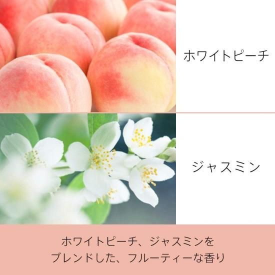 ●ホワイトピーチ、ジャスミンをブレンドした、フルーティな香り。